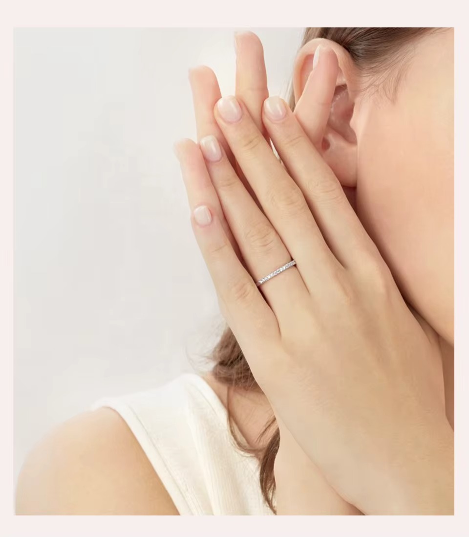 Inelul este decorat cu 14 pietre rotunde moissanite de 0.027ct, oferind un echilibru perfect între eleganță și strălucire.