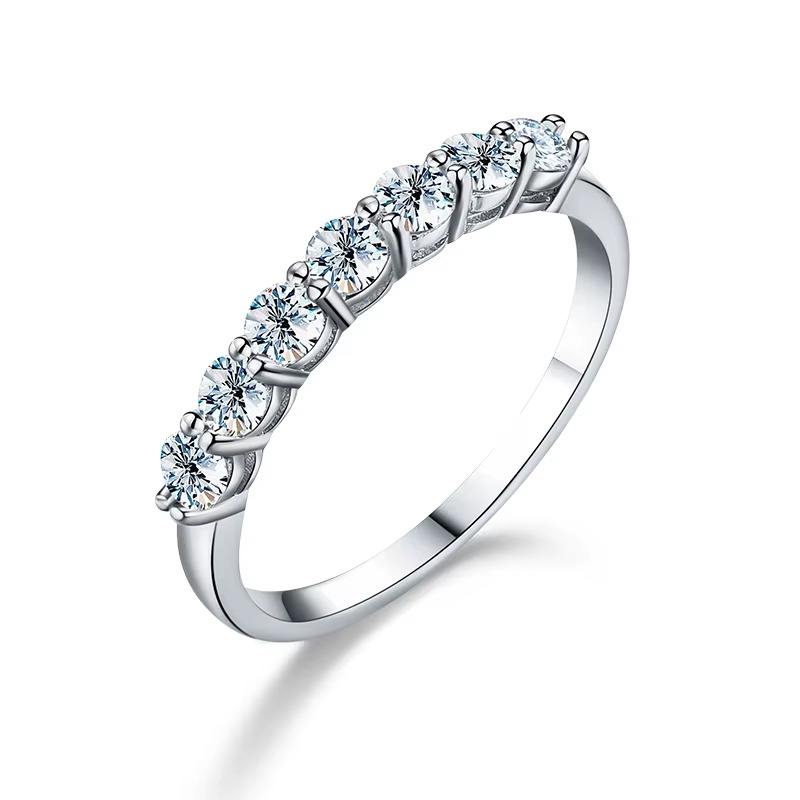 Inelul este decorat cu șapte pietre rotunde moissanite de 0.1ct, oferind un echilibru perfect între eleganță și strălucire.